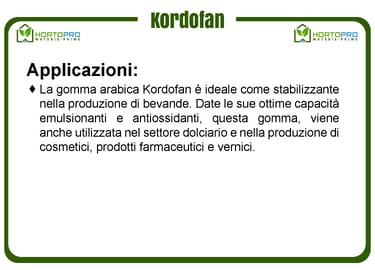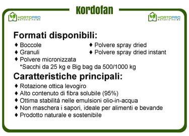 La gomma arabica Kordofan è una resina naturale essudata dall'Acacia Senegal e rappresenta una delle varietà più pregiate. Raccolta nelle regioni semi-aride del Sudan, questa gomma si distingue per la sua capacità di formare emulsioni stabili. La sua purezza e le sue proprietà uniche la rendono adatta a numerose applicazioni come nel settore industriale, bevande, farmaceutico, cosmetico agricolo e tecnico-industriale.