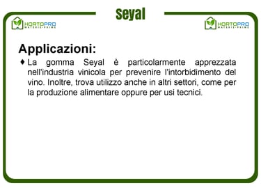 La gomma arabica Seyal proviene dall'Acacia Seyal, un altro tipo di gomma arabica conosciuta per le sue proprietà emulsionanti e stabilizzanti, particolarmente efficace per applicazioni in cui è necessaria una protezione contro l'intorbidimento, come nella chiarificazione del vino.