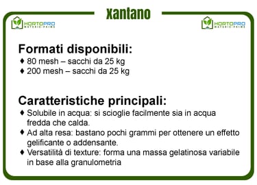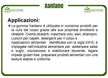 La gomma Xantano, o gomma Xantana, è una polvere gelificante e addensante ottenuta dalla fermentazione di materie prime vegetali attraverso l'azione del batterio Xanthomonas campestris, da cui prende il nome. Scoperta negli anni '60 dal Dipartimento di Agricoltura degli Stati Uniti, inizialmente era utilizzata solo in ambito farmaceutico e cosmetico. Oggi, grazie alla sua versatilità, è impiegata in numerosi settori industriali. Il prodotto è purificato, essiccato e macinato per ottenere una polvere fine, insapore e inodore.